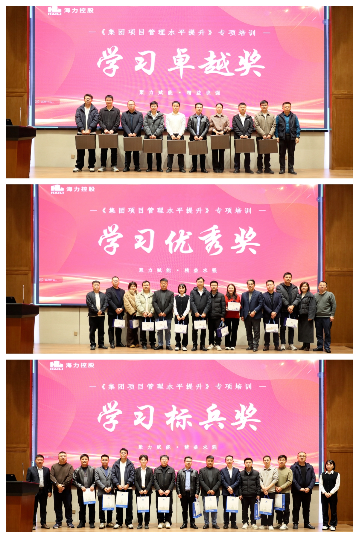 第三天,培训进入“实战落地・聚力攻坚”环节,参训学员以分组形式开展项目全周期管理及经营实战共创,将所学知识转化为实际解决方案。各小组完成方案后依次进行现场汇报,由讲师组成的评委团进行专业问诊与评审,针对性提出优化建议,实现学用结合、以评促学。 培训结束后,执行总裁黄文斌作总结讲话,为本次培训画上圆满句号,他寄予参训学员殷切期望,希望全体学员将培训所学运用到实际工作中,以学促行、以行践知,推动集团项目管理工作提质增效、提档升级。 为保障培训效果,集团要求学员提前梳理项目重难点问题、带着问题参训。同时,将参训学员的课堂纪律、报告质量等综合表现进行量化评分,择优评选出学习标兵、学习优秀、学习卓越奖获得者,并于现场举行颁奖仪式。培训结束后,集团还将开展学后应用效果跟踪,持续关注学员知识转化与工作提升情况,确保培训成果落地见效。 此次专项培训是海力控股集团应对行业发展挑战、强化内部能力建设的重要举措,通过系统化、实战化的培训内容,为集团项目管理团队搭建了学习交流、能力提升的平台。参训学员纷纷表示,本次培训课程设置贴合工作实际,内容干货满满,既深化了对集团发展战略的理解,又掌握了项目管理各环节的实用技巧与方法。下一步,参训学员将把培训所学转化为工作实效,以更专业的能力、更务实的作风投身项目管理工作,持续提升项目全周期管理与经营能力,以实干业绩为海力控股集团高质量发展贡献更多力量。