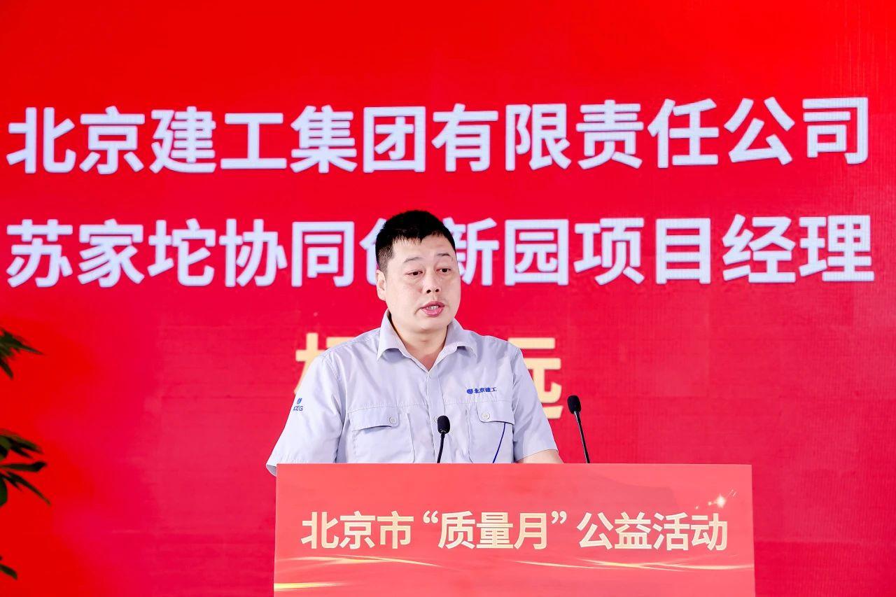 日前,以“回应群众新期待 建设品质好住宅”为主题的2024年北京市工程建设“质量月”公益活动在北京建工集团承建的苏家坨镇一镇一园集体产业用地北京协同创新园项目举办。活动由北京市住房城乡建设委员会、北京市海淀区住房城乡建设委员会指导,北京市建筑业联合会、北京市海淀区建筑业行业协会、北京市建设监理协会和北京市工程建设质量管理协会主办,北京建工集团协办。