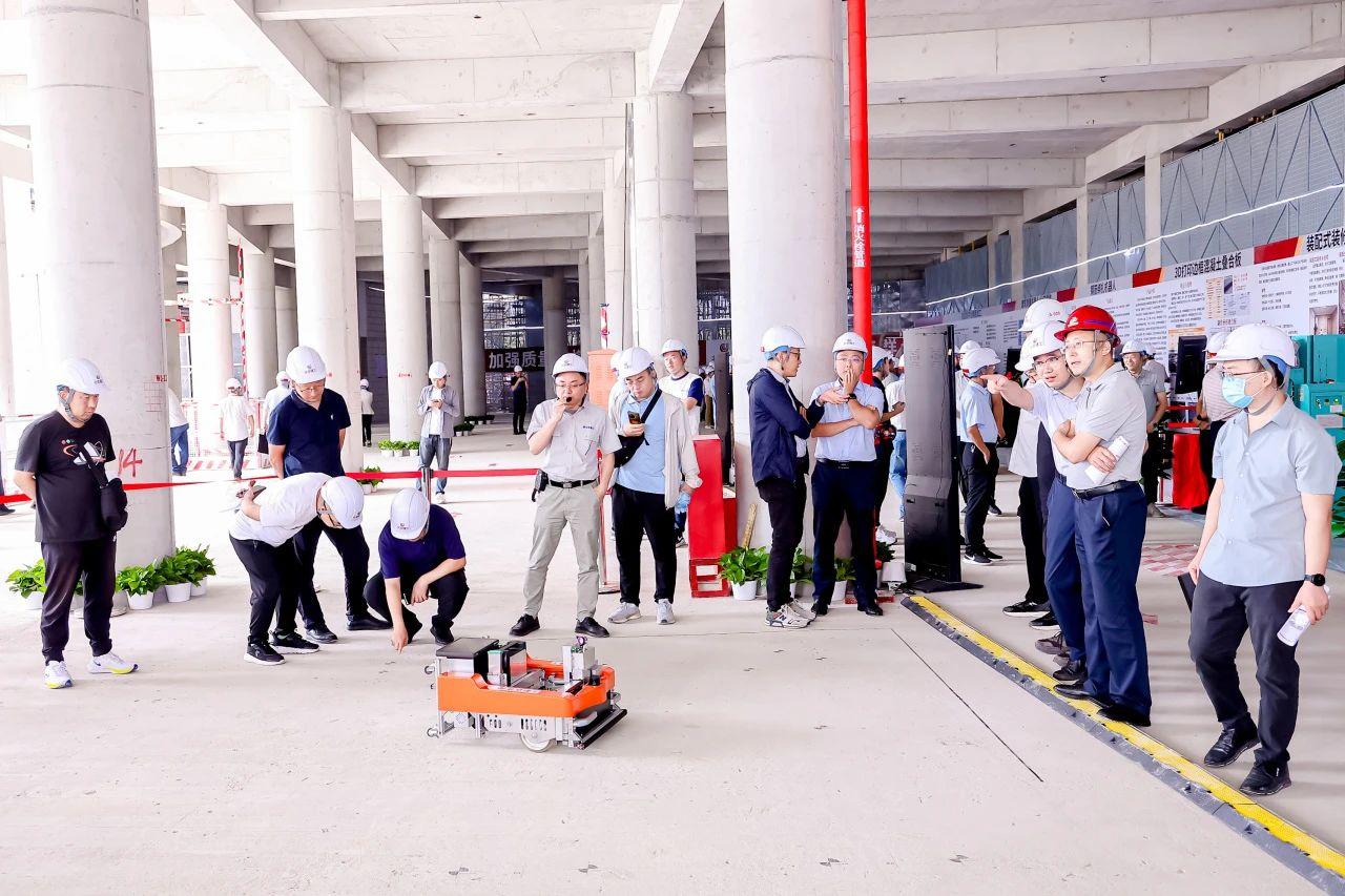 随后,与会人员对苏家坨镇一镇一园集体产业用地北京协同创新园项目进行了实地观摩。该项目位于北京市海淀区中关村科学城北区翠湖科技园,是北京市2021年“3个100”重点工程,也是中关村科学城北区“一镇一园”示范项目,周边环境优美、山峦起伏,建成后将成为充分融入自然的现代化科技园区。工程应用了智慧管理系统,对深化设计、材料采购、施工管理、工程结算等全过程实施智慧化管理,以及数字化模板加工技术、测量机器人、巡检机器人等,以质量管理为抓手,显著实现了降本增效,促进了质量变革创新。