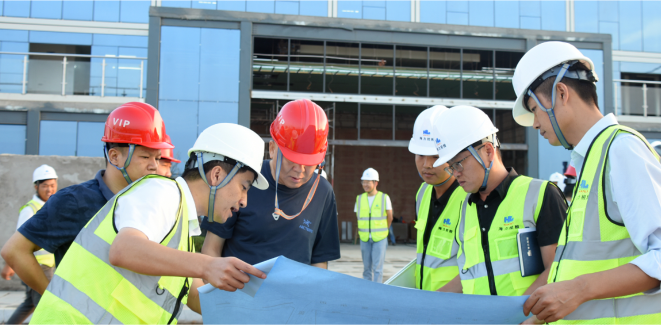 9月25日,海力控股集团董事局主席卜海国、总裁邓杰及集团高管前往各在建项目调研,检查并指导项目推进工作,并向项目施工一线员工表示了亲切的问候。 调研组一行深入施工现场,