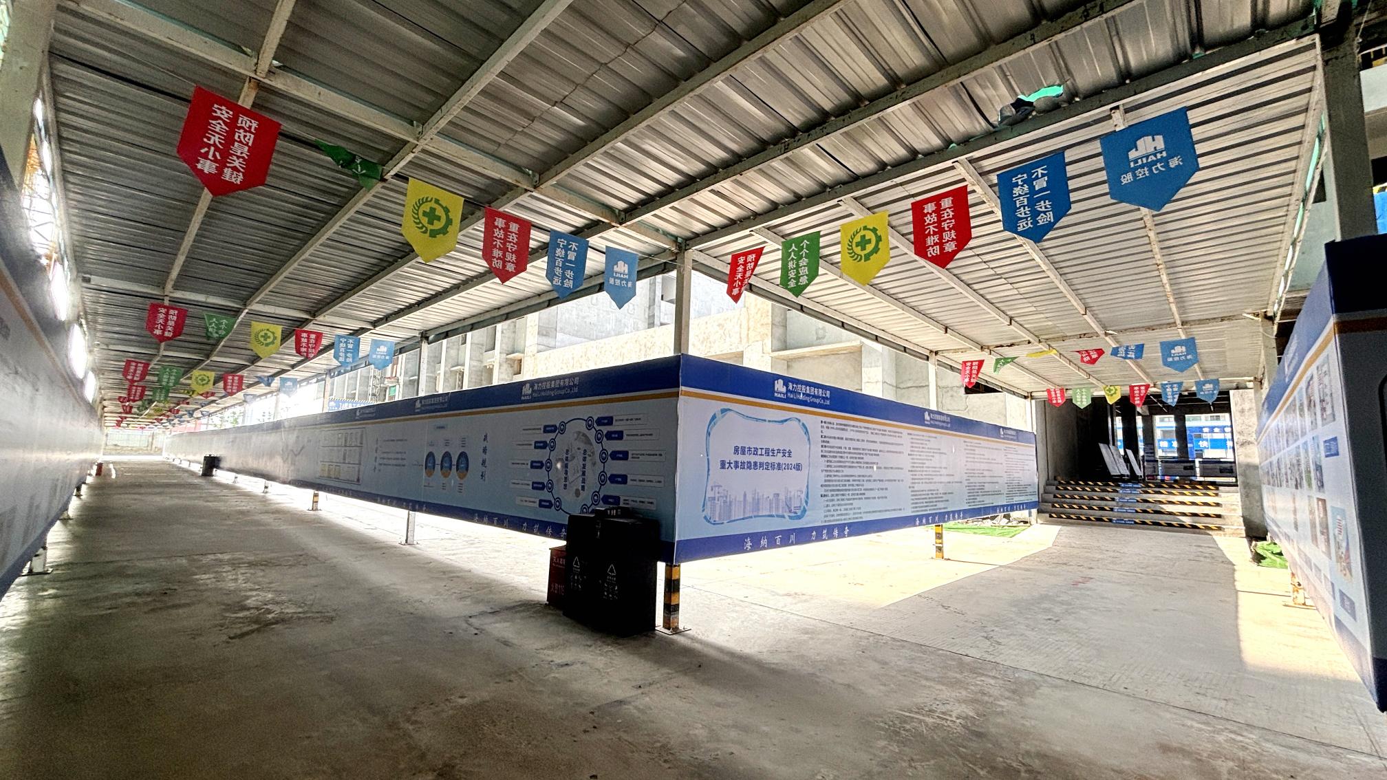 在材料资源利用方面,装配式办公房、箱式可周转茶水亭等设施的应用,体现了“节材与环保”的管理思路;钢筋加工棚、防护棚等均采用工具式装配式结构,便于周转使用,有效降低施工成本。这种“安全+绿色”的建造模式,提升了施工现场安全文明水平,实现了安全防护与绿色施工协同推进。