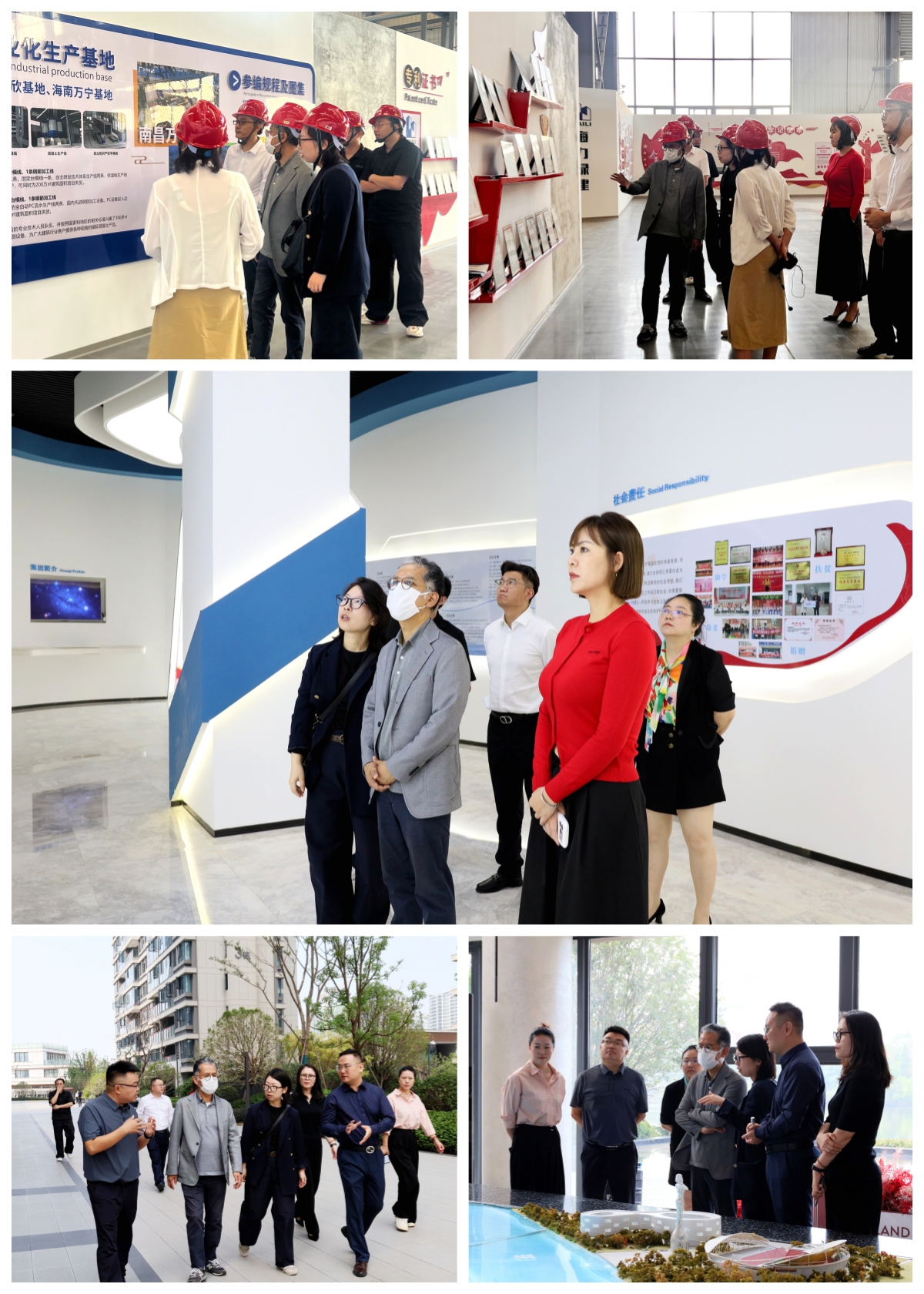 在国家级装配式建筑产业基地——海力万欣建筑装配式工厂,高巣幸二教授详细考察了预制构件生产全流程及海力绿建工业建筑装配式技术体系,他特别询问了全装配式的建造方式以及适用范围,对海力工业厂房装配式体系和勇于创新的精神表示高度认可。随后,高巣幸二教授走进集团地产开发标杆项目璞心岛,重点关注绿色施工技术落地情况。项目中采用的永临结合设计、循环水回收系统,与教授团队研究的“产业副产物资源化”技术高度呼应。