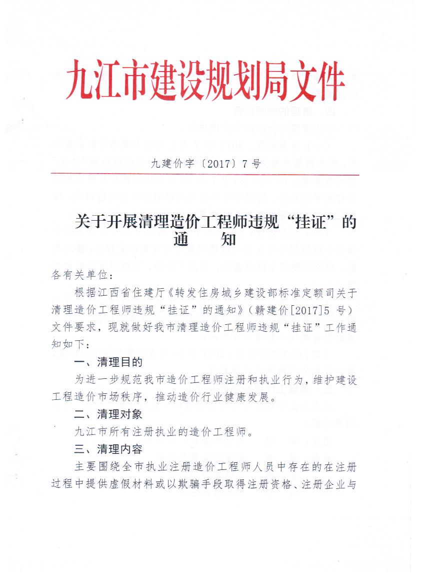 开展清理造价工程师违规“挂证”的通知